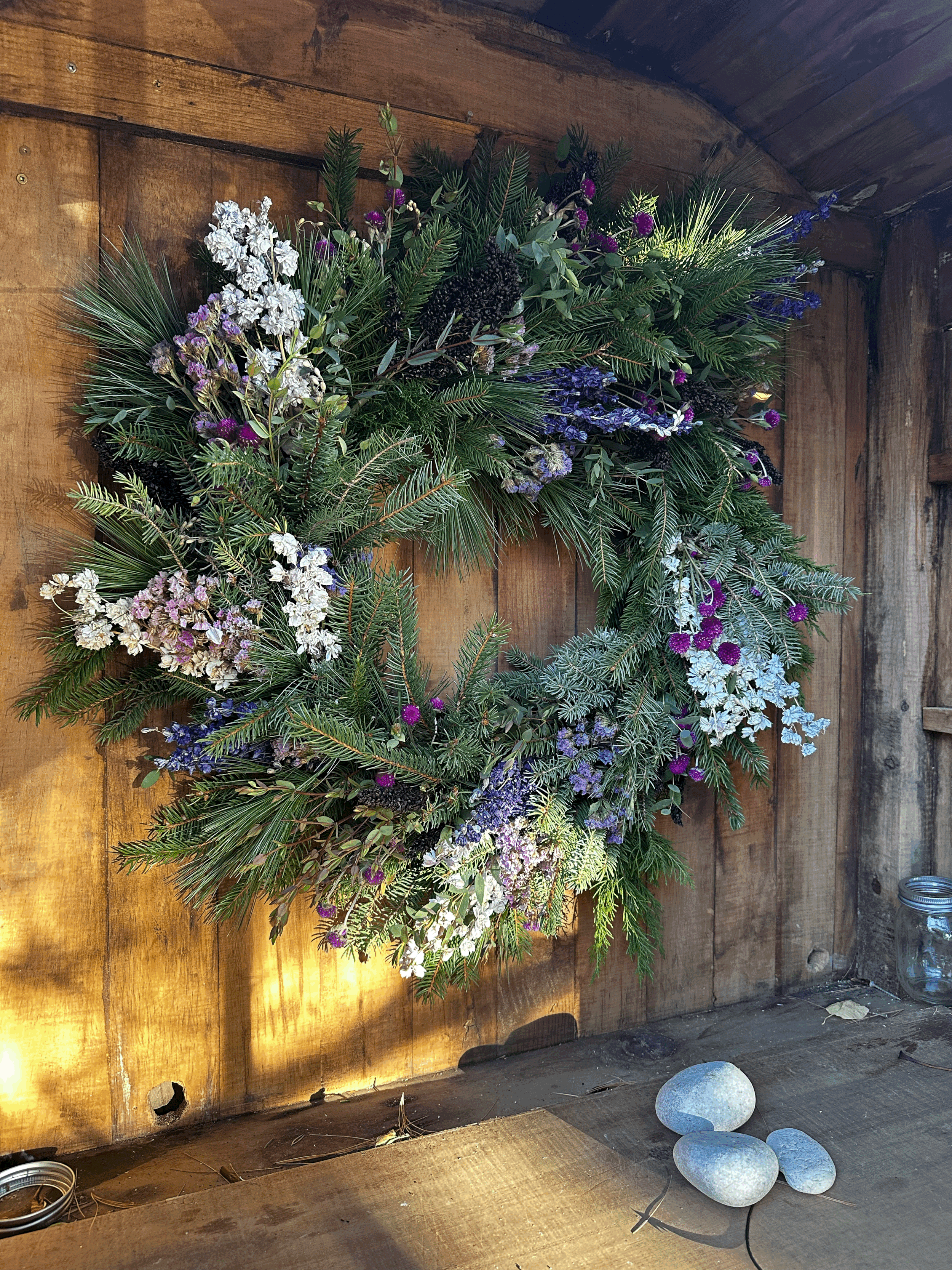 This set of 5 colourful glass balls bring a a timeless touch of Christmas light vibes mixed with our love for the garden. Each one filled with a special flower; Larkspur, gomphrena, statice, bunny tail, & yarrow. Bring a touch of the flower fields beauty indoors with these exquisite glass ball ornaments.